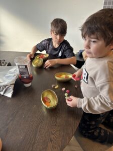 Vi åkte till kusinerna men inte Fadi för han skulle jobba.  Barnen fick pengar av pappa och även kusinerna fick varsin slant.
